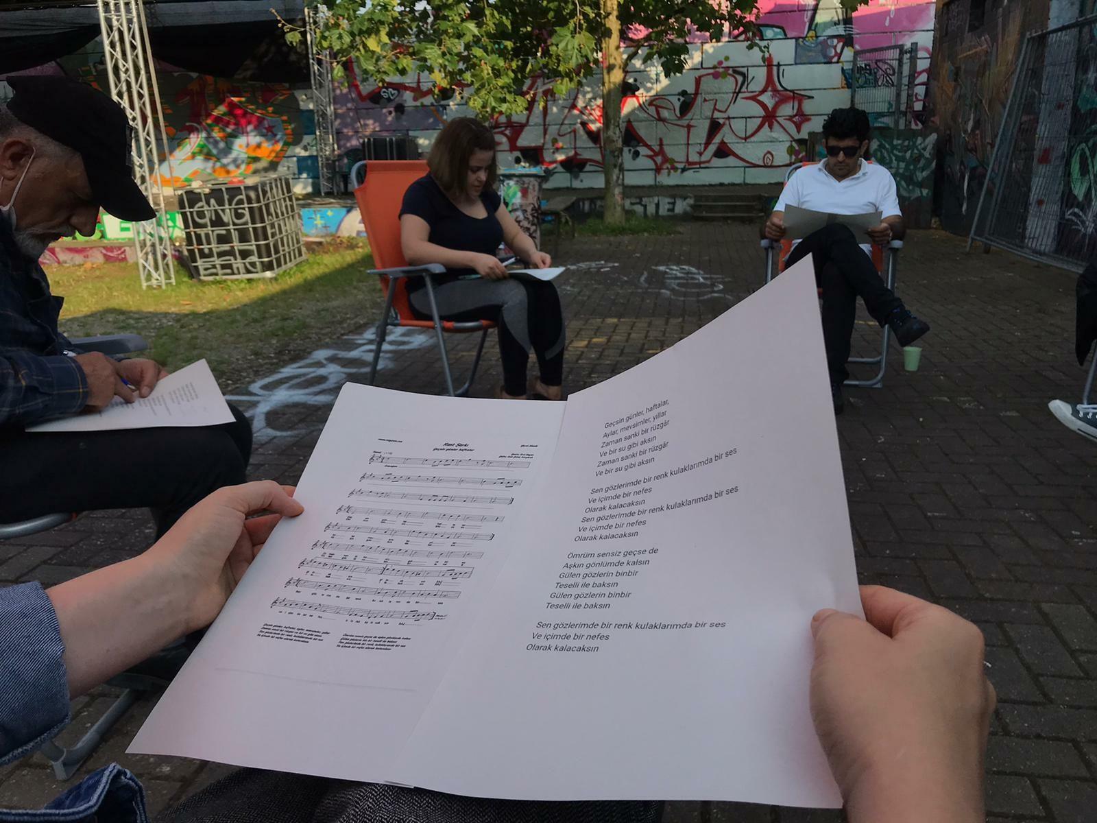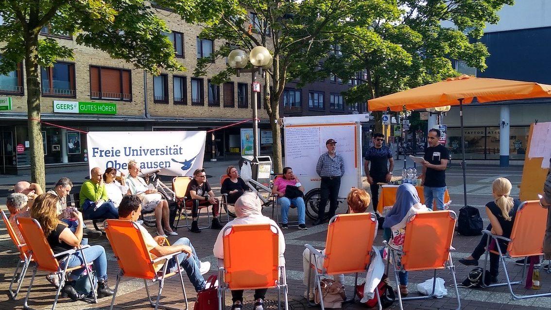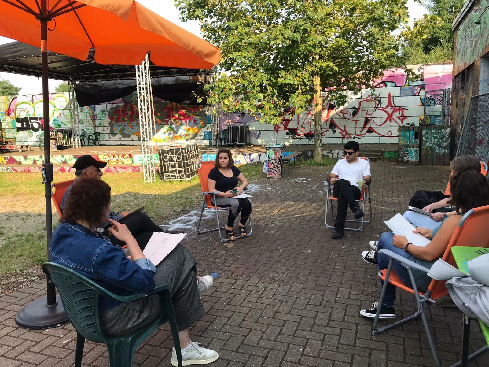 Zum Beginn der neuen Woche: endlich auch mal Quartiersgarten ohne Regen! Auf dem Museumsbahnsteig wurden die ersten Sounds of Oberhausen gesammelt, im Hof des Druckluft übte The Choir zum ersten Mal türkische Lieder ein – und im Garten K14 hatte unser Seminar Der gewöhnliche Lesende den Autor Andreas von Westphalen zu Gast, der mit dem Seminar sein Werk "Die Wiederentdeckung des Menschen" diskutierte.