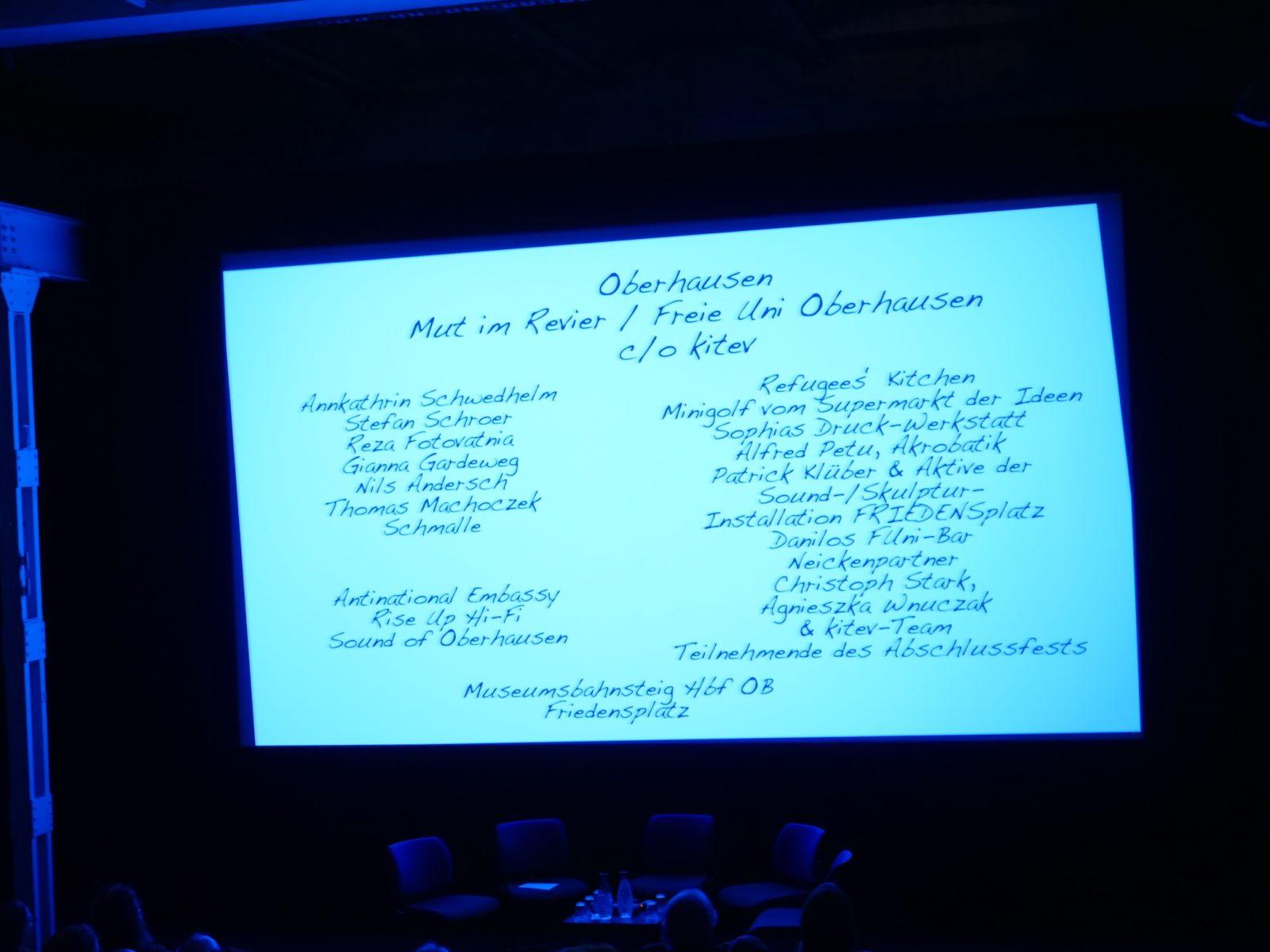 Denn der Zentral- und Höhepunkt dieser Abschluss-Veranstaltung war die Preview eines Kino-Films über die Utopolis-Arbeiten in allen 16 Standorten. Realisiert wurde er von unseren kitev-Partnern Matthias Coers und Grischa Dallmer. Unterstützt wurden diese Filmemacher von einem Dramaturgieteam aus 6 Utopolis-Mitwirkenden, darunter auch Stefan Schroer von kitev.